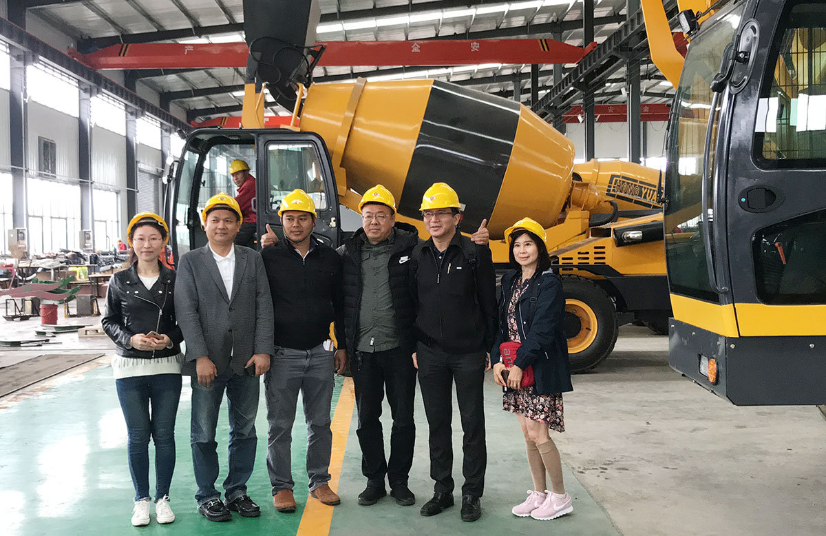 Немецкие клиенты посещают фабрику хун юн, чтобы поговорить о бизнесе с погрузчиком